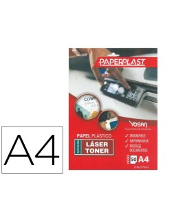 Papel plastico yosan paperplast poliester blanco brillo din a4 200 mc imprimible paquete de 50 hojas