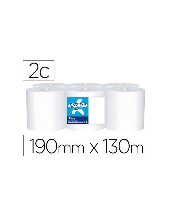 Papel secamanos amoos 2 capas 190 mm x 130 mt paquete de 6 rollos