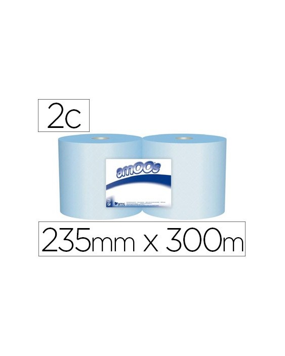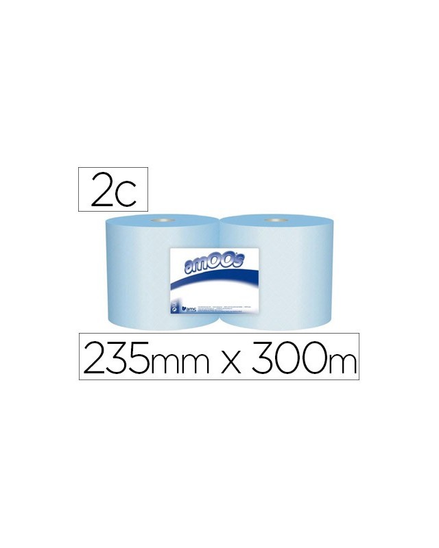Papel secamanos industrial amoos 2 capas 235 mm x 300 mt color azul paquete de 2 rollos