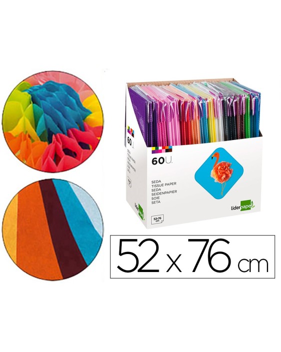 Papel seda liderpapel 52x76 cm expositor 60 bolsas de 5 hojas 12 colores surtidos