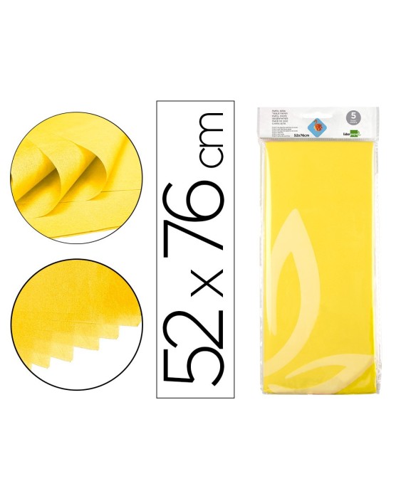 Papel seda liderpapel 52x76cm 18g/m2 bolsa de 5 hojas amarillo