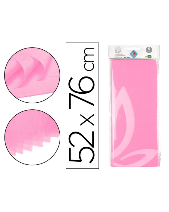 Papel seda liderpapel 52x76cm 18g/m2 bolsa de 5 hojas rosa