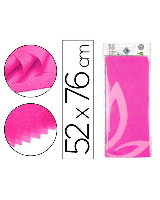 Papel seda liderpapel 52x76cm 18g/m2 bolsa de 5 hojas rosa fuerte