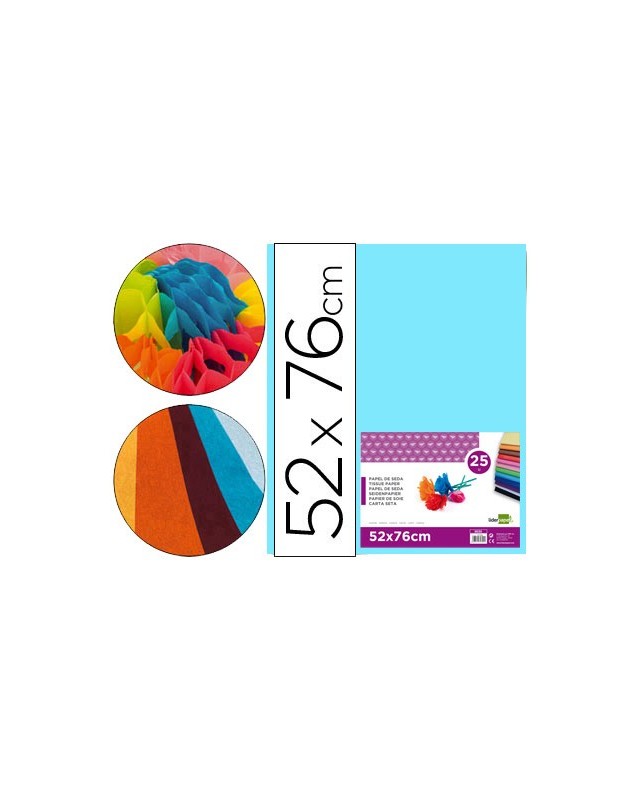 Papel seda liderpapel celeste 52x76 cm 18 gr paquete de 25 hojas