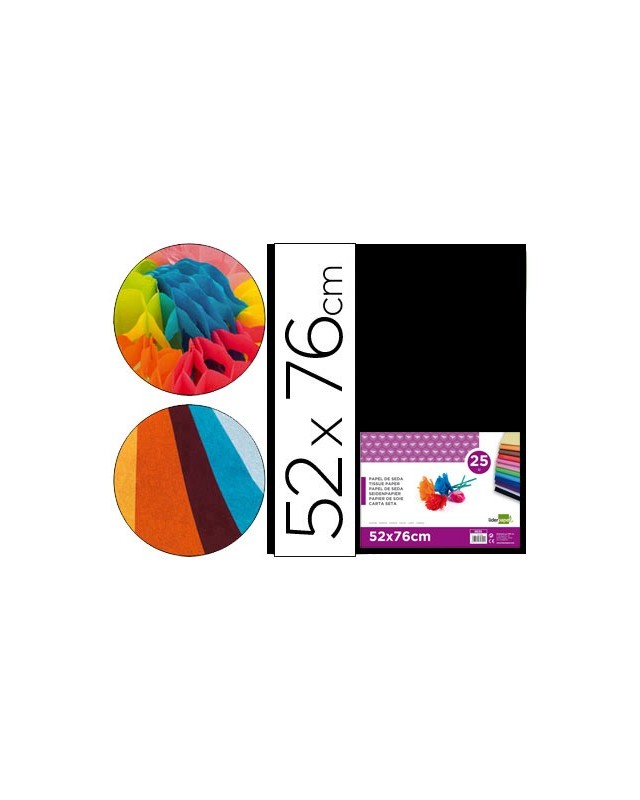 Papel seda liderpapel negro 52x76 cm 18 gr paquete de 25 hojas