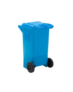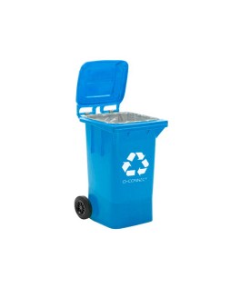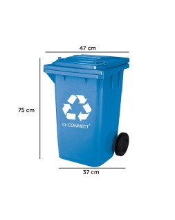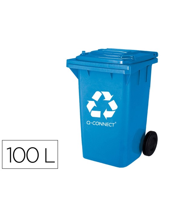 Papelera contenedor q-connect plastico azul para papel y carton 100l con tapa y ruedas 750x470x370 mm