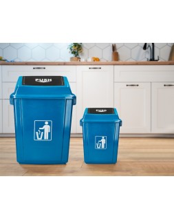 Papelera contenedor q-connect plastico con tapa de balancin 58 litros azul 470x330x760 mm