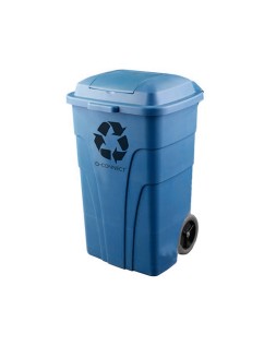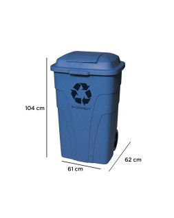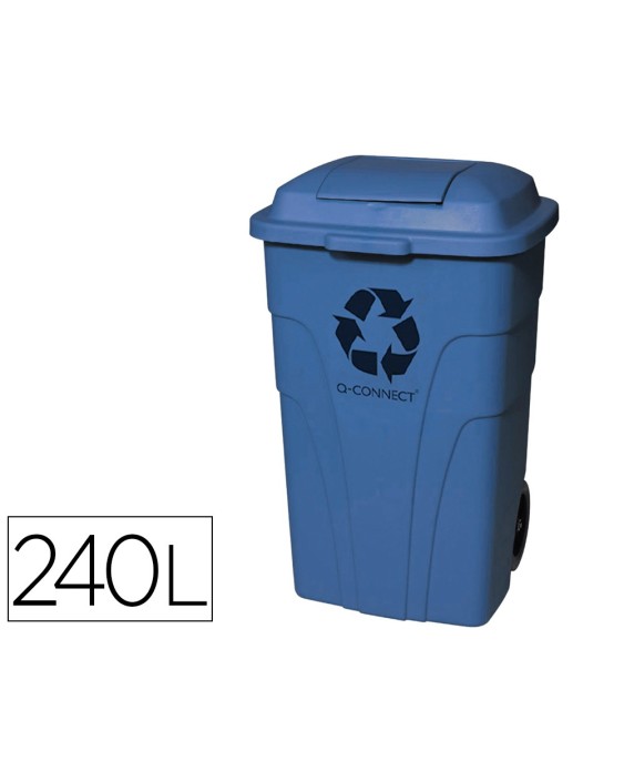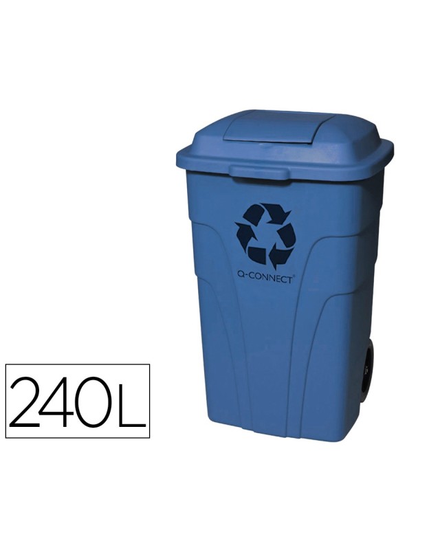 Papelera contenedor q-connect plastico con tapadera 240l color azul 1040x620x610 mm con ruedas