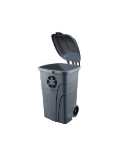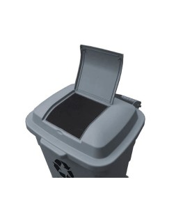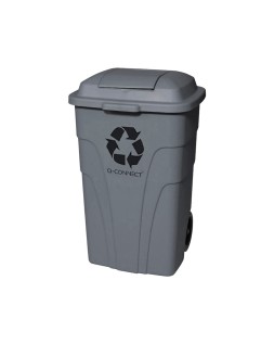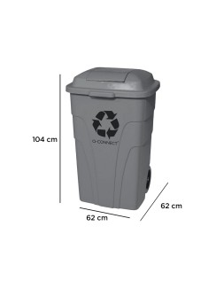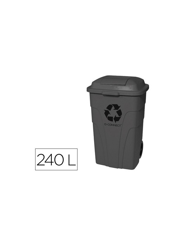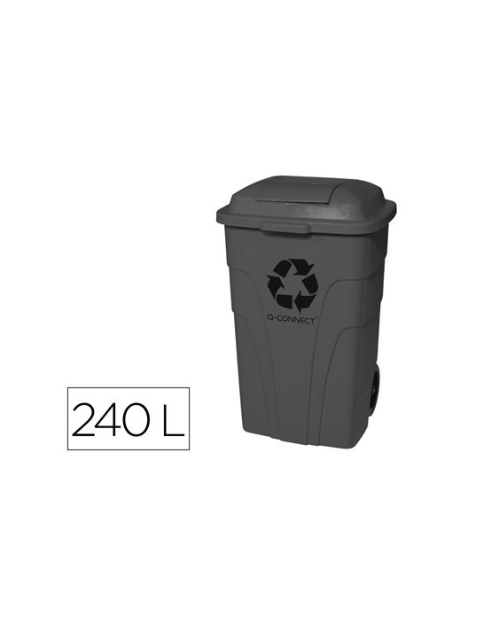 Papelera contenedor q-connect plastico con tapadera 240l color gris 1040x610x610 mm con ruedas