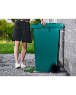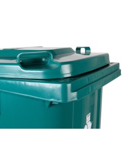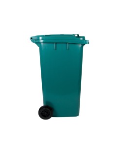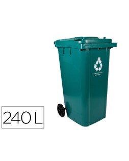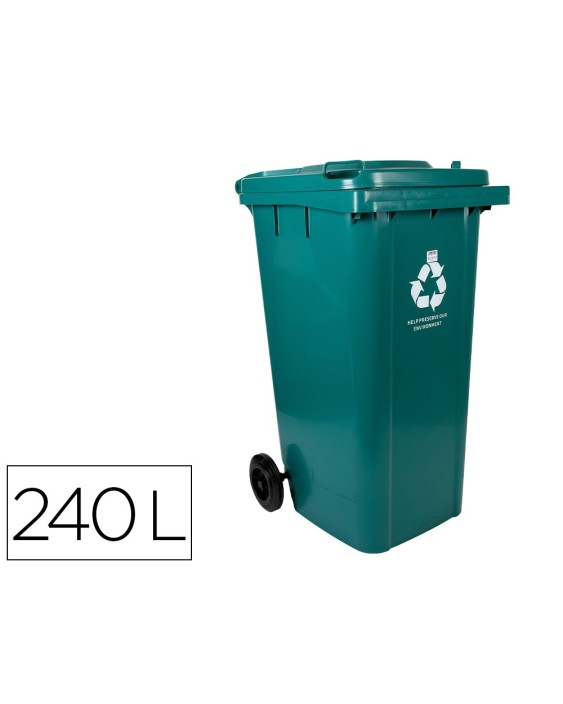 Papelera contenedor q-connect plastico con tapadera y ruedas 240 litros verde 1040x620x610 mm