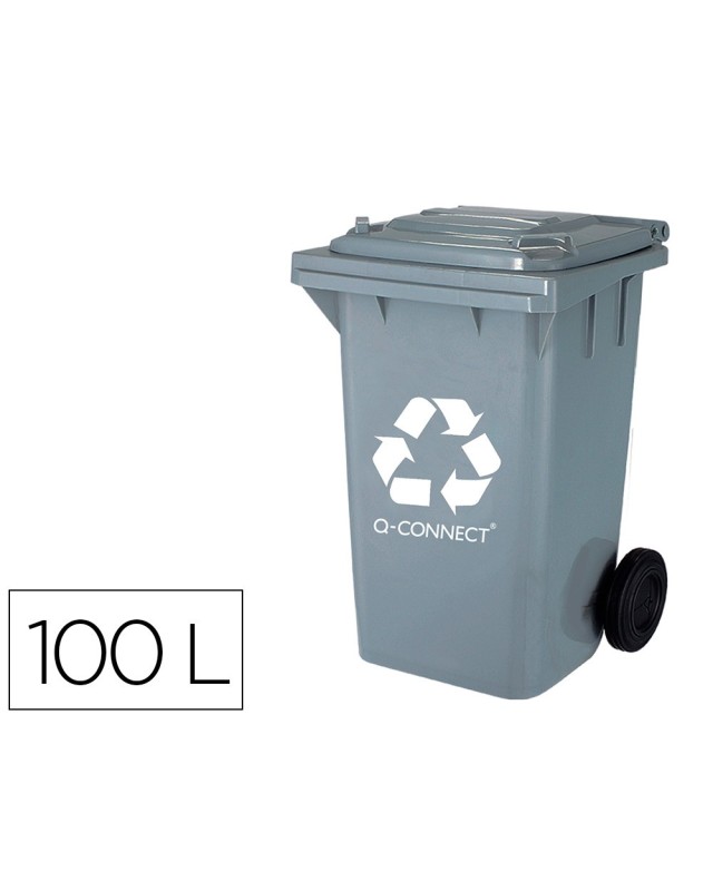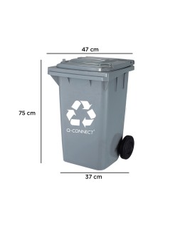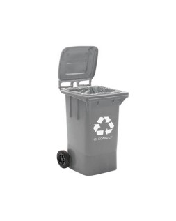 Papelera contenedor q-connect plastico gris para desechos en general 100 l con tapa y ruedas 750x470x370 mm