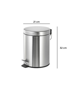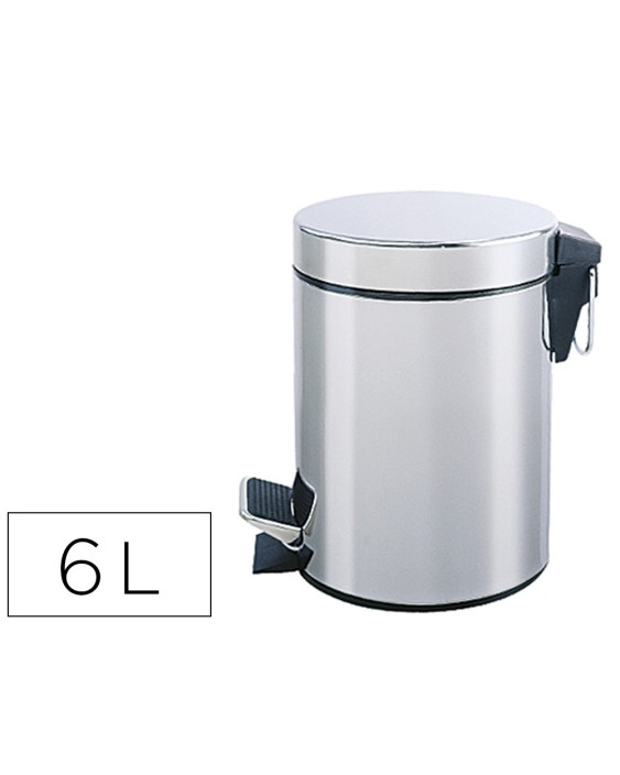 Papelera metalica q-connect con pedal cromada 32x21 cm capacidad 6 litros