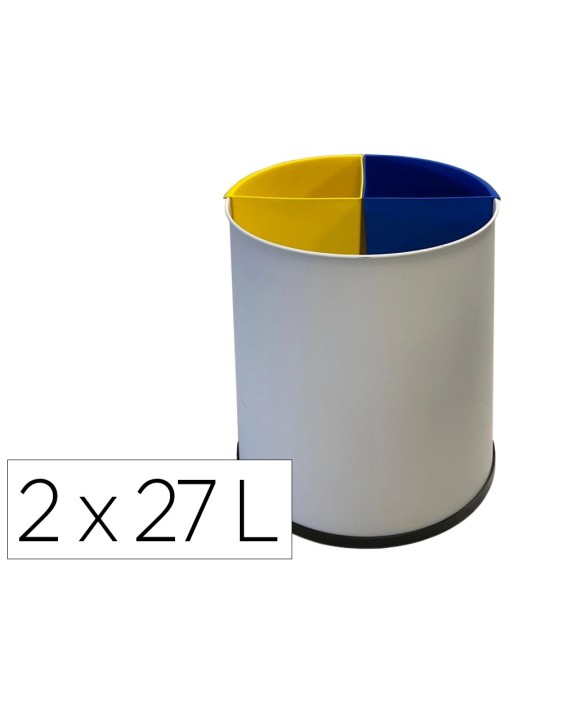 Papelera metalica sie para reciclaje con 2 departamento extraible 2x27 litros 300x295 mm