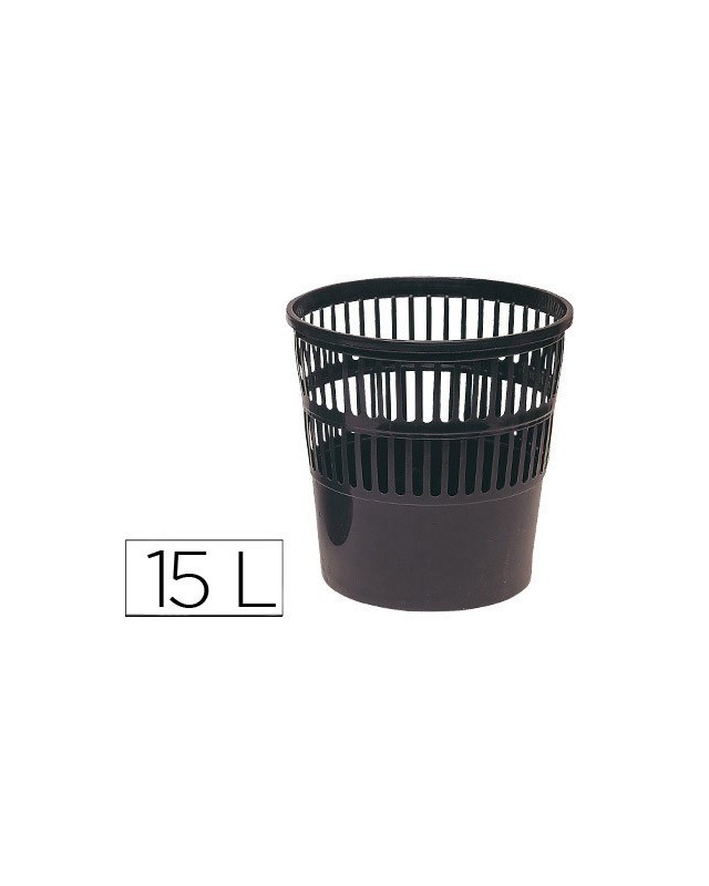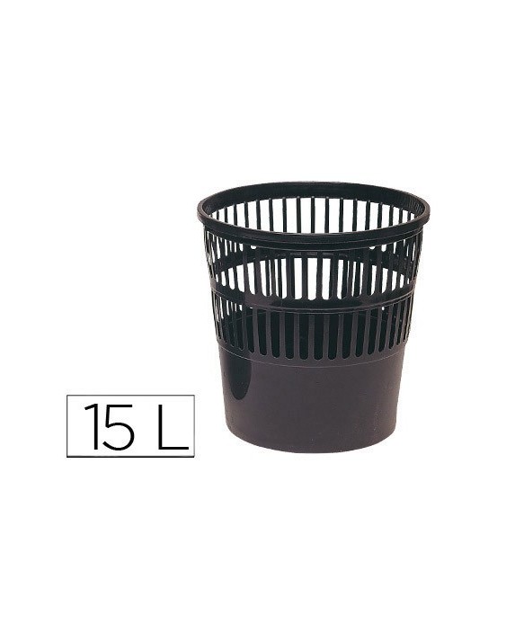 Papelera plastico q-connect 15 litros rejilla color negro 285x290 mm