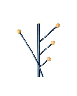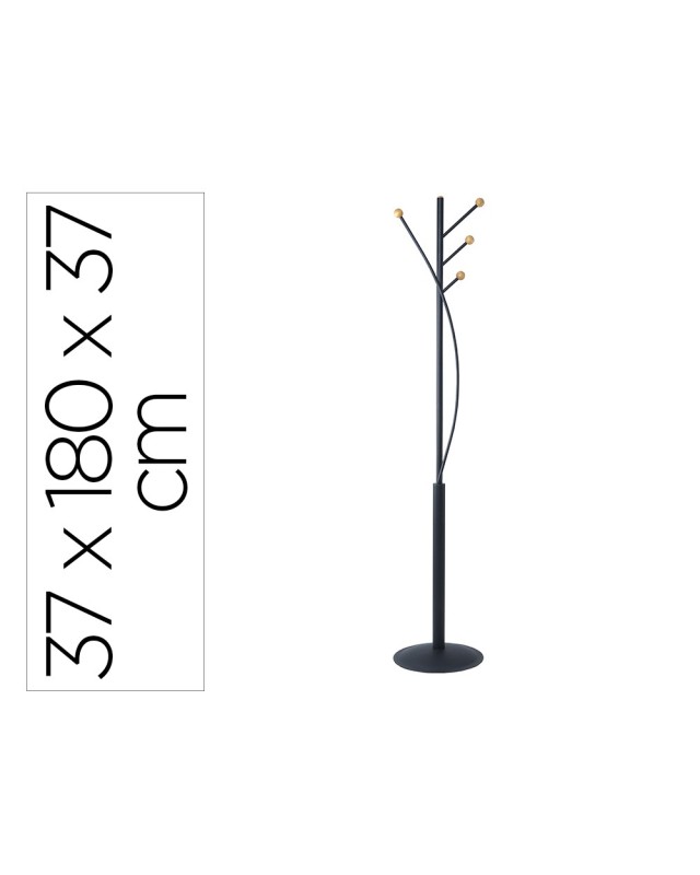 El perchero joven y moderno con pie de acero. Excitante contraste: superficie negra mate y cabezales redondos de madera de haya. Diseño dinámico: tres ganchos rectos y un gancho elíptico. Ahorro de espacio: diámetro reducido también para habitaciones pequeñas. Seguro: las cabezas redondeadas de madera no dañan la ropa. Base de acero diametro 36,5 cm, de forma curvada garantiza un soporte seguro. Especialmente adecuado para el uso privado o como segundo armario. Columna inferior diametro 5 cm, superior 2,5 cm. 4 ganchos metálicos con piezas terminales, diametro 3,3 cm de madera, firmemente encolados. Anchura de la corona superior: 35 cm. Color negro RAL 9004.Montaje rápido y sencillo. Reciclable: desmontar y devolver al ciclo de m ateriales.