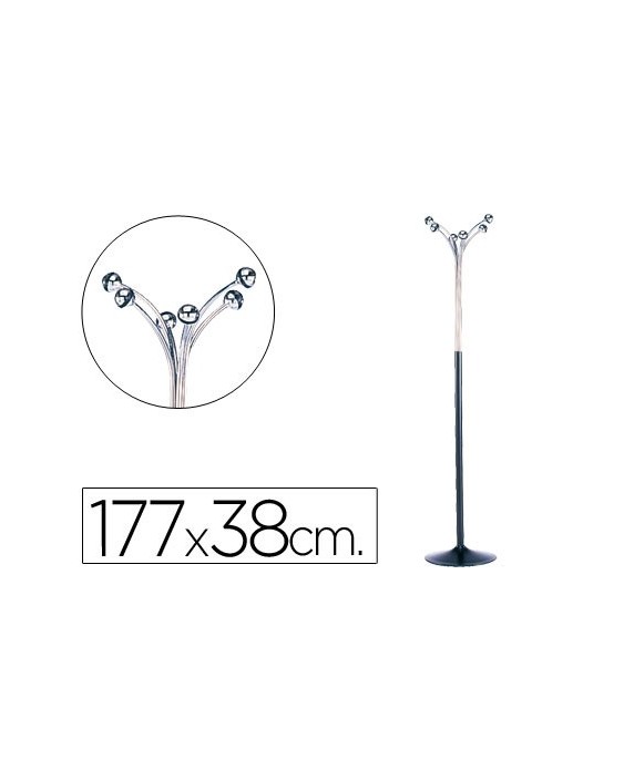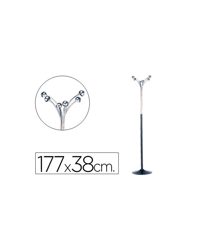 Perchero metalico pie 6 colgadores color negro/cromado 177x38 cm