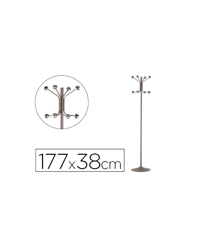 Perchero metalico pie 8 colgadores color gris 177x38 cm