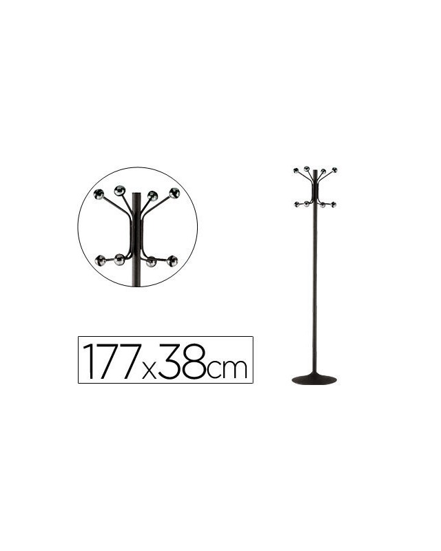 Perchero metalico pie 8 colgadores color negro 177x38 cm