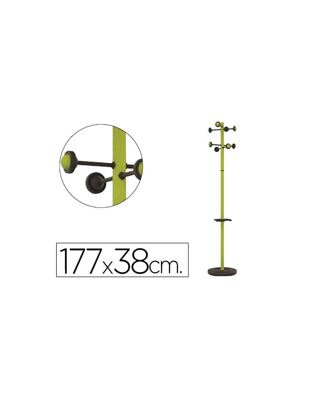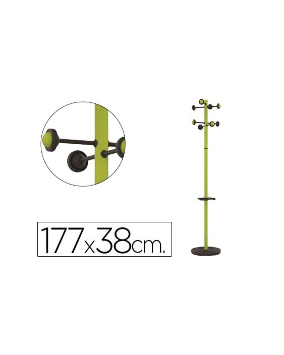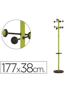 Perchero metalico unilux accueil pie 8 colgadores con paraguero y bandeja goteo verde 177x38 cm