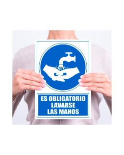 Pictograma archivo 2000 obligatorio lavarse las manos pvc color azul 210x297 mm