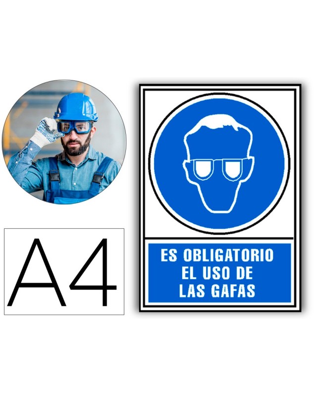 Pictograma archivo 2000 obligatorio uso de gafas pvc azul luminiscente 210x297 mm