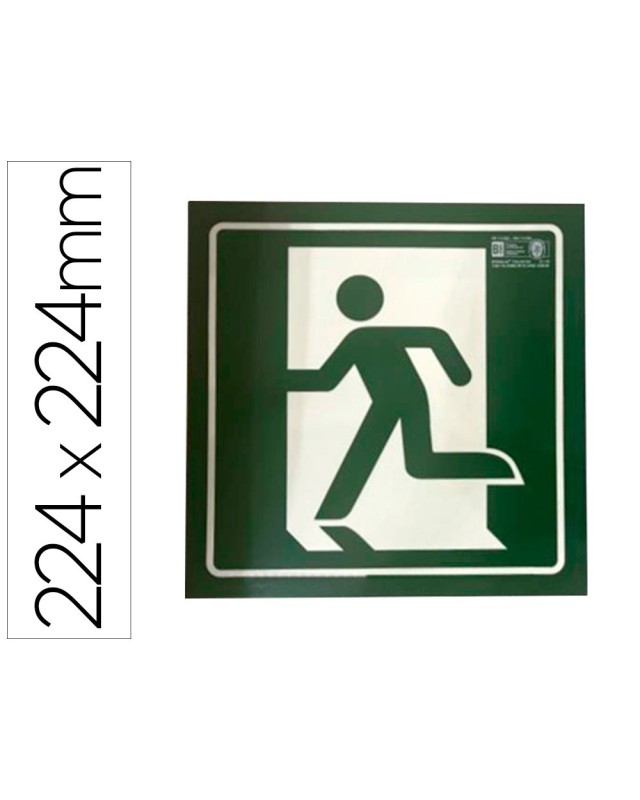 Pictograma syssa señal de salida de emergencia izquierda en pvc fotoluminiscente 210x210 mm