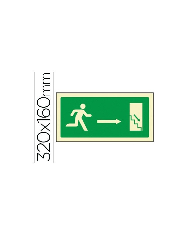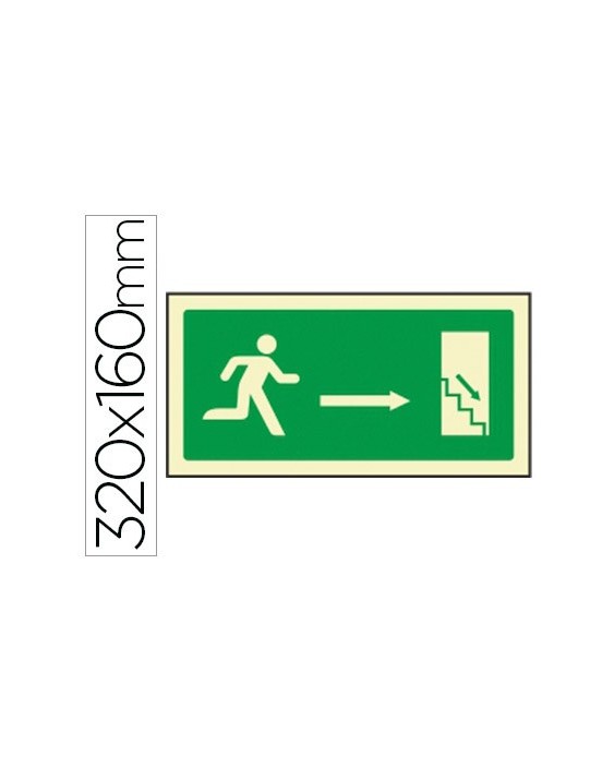Pictograma syssa señal de salida emergencia derecha bajando en pvc fotoluminiscente 320x160 mm
