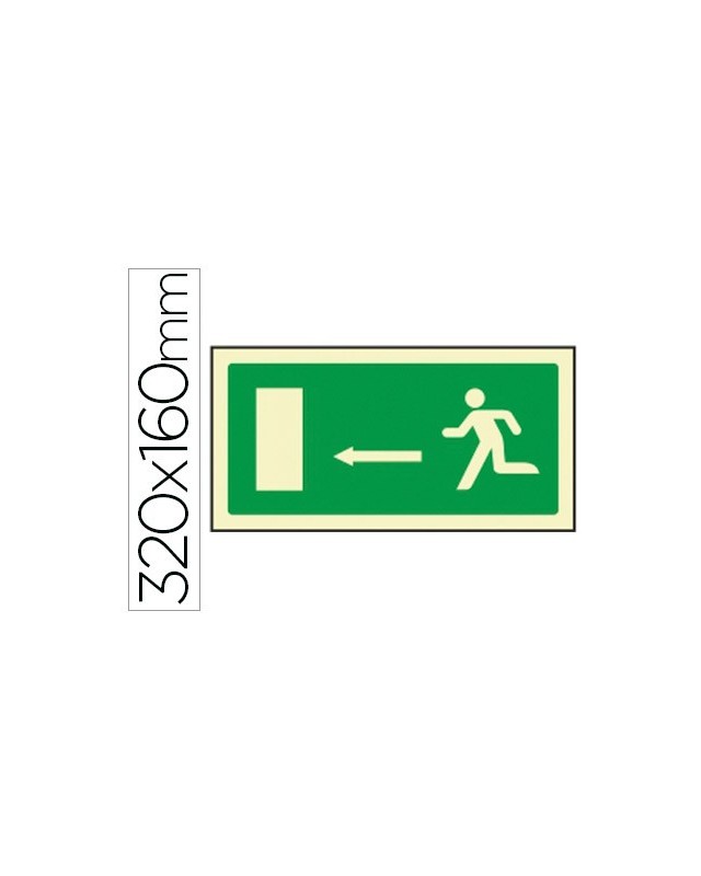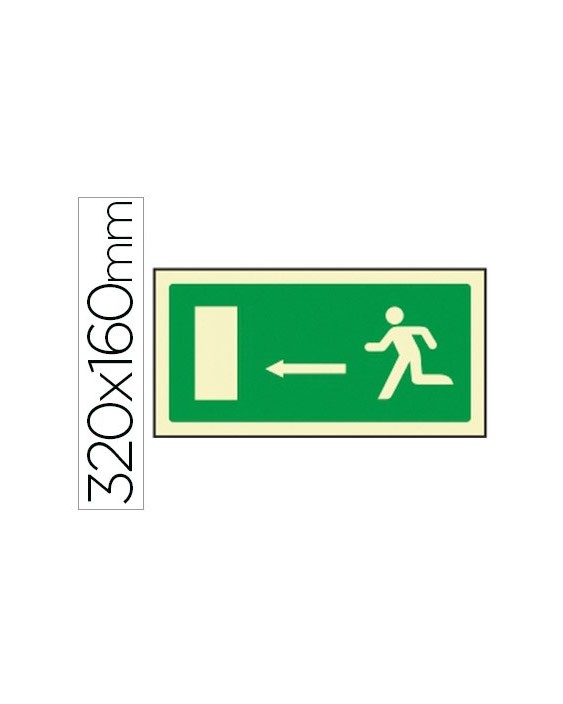 Pictograma syssa señal de salida emergencia flecha izquierda en pvc fotoluminiscente 320x160 mm