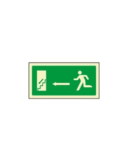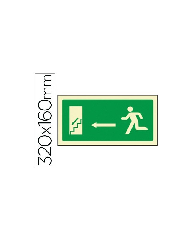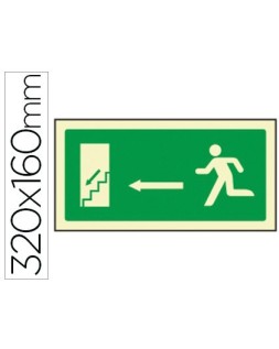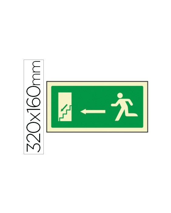 Pictograma syssa señal de salida emergencia izquierda escalera bajando en pvc fotoluminiscente 320x160 mm