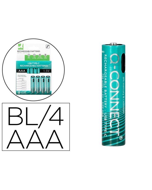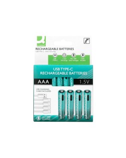 Las baterías AAA recargables USB-C de Q-Connect ofrecen una solución moderna y eficiente para tus necesidades de energía. Con una capacidad de 500mAh y un voltaje de 1.5V, estas baterías pueden recargarse fácilmente a través de un cable USB-C, similar al de un teléfono móvil. El paquete incluye un cable que permite cargar hasta 4 baterías simultáneamente, con un tiempo de carga de solo 2 horas, lo que las hace prácticas y rápidas de usar. Presentadas en un blíster que contiene 4 baterías y 1 cable, estas bateríasson ideales para dispositivos de alto consumo energético y garantizan un rendimiento fiable. Además, cumplen con las normativas de importación y medioambientales, lo que asegura su compatibilidad con los estándares actualuales.