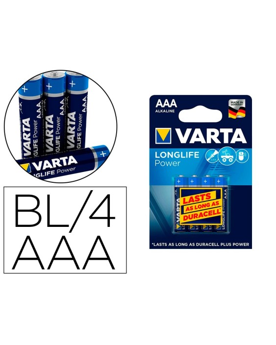 Pila varta alcalina longlife power aaa tipo lr-03 blister de 4 unidades