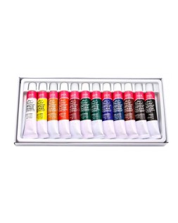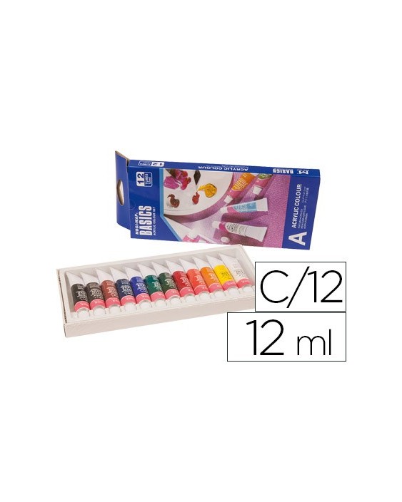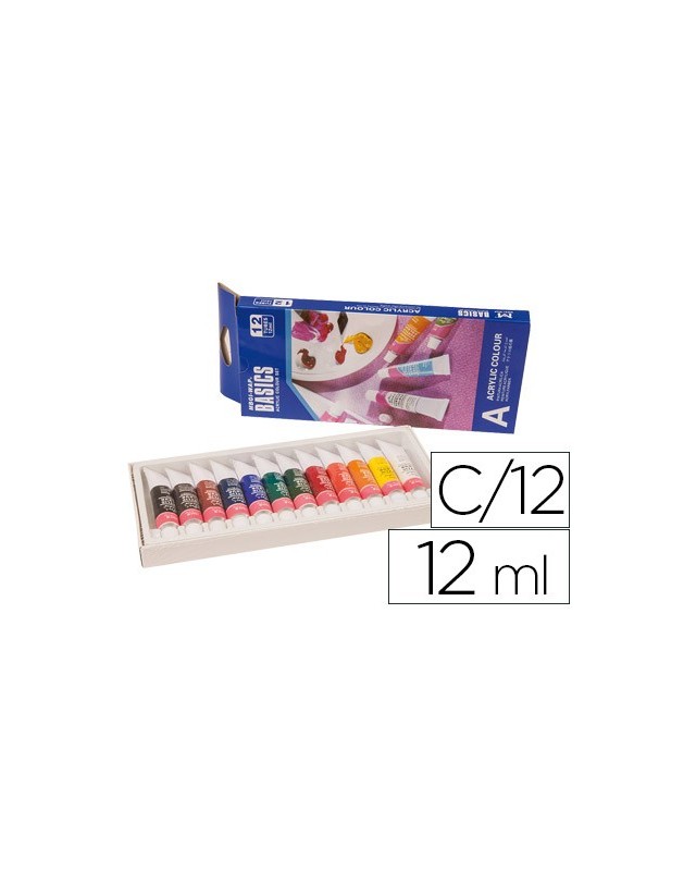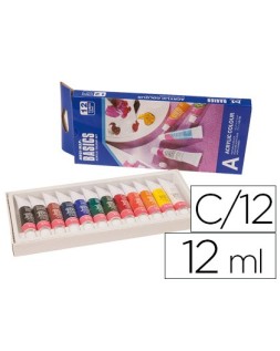 Caja de cartón que incluye 12 tubos de colores surtidos. Estas pinturas acrílicas están formuladas con la técnica más innovadora y con una gran relación calidad/precio. Son permanentes al agua y de secado rápido, poseen una buena resistencia a la luz y una fuerte adhesión. Además, son respetuosas con el medio ambiente y no tóxicas, por lo cual son adecuadas para uso escolar.