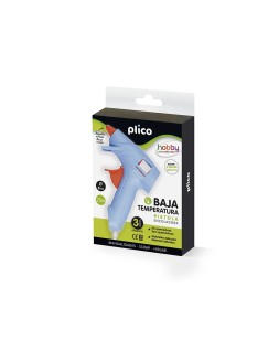Pistola termofusible mini. Funde a baja temperatura. 25 W. Para uso con barritas de cola de 8 mm de diámetro. Rápida. No gotea. Fácil aplicación. Adecuada para pegar materiales sensibles al calor como porexpán, PVC blanco, celofán, globos, etc. Medidas: 135 x 105 mm.