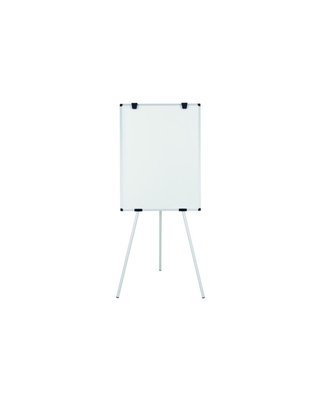 Estructura liviana, simple y resistente, fácil de transportar a cualquier espacio de trabajo, oficina o sala de reuniones. Superficie de borrado en seco no magnética fácil de escribir y limpiar, ideal para un uso moderado. Personaliza el caballete según tus necesidades y utiliza la misma estructura con tableros de diferentes tamaños y otros accesorios. Incluye abrazaderas de almohadilla ajustables para usar con rotafolios y una bandeja de plástico para accesorios en la parte posterior de la pizarra. Diseñado paracumplir con los principios de una economía circular bajo el modelo de sus tentabilidad ambiental. Las 3 patas de aluminio están sólidamente conectadas entre sí en la parte superior con un conector triangular de plástico, q, que también sirve como bandeja de accesorios