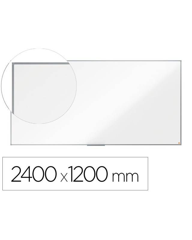Pizarra magnética de acero con un marco de aluminio anodizado. Se fija mediante a la pared desde las esquinas y se suministra con una bandeja para rotuladores. La superficie de la pizarra magnética de acero pintado ofrece un mayor nivel de borrado para un uso frecuente. Medidas: 2400x1200 mm.