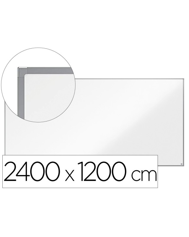 Pizarra magnética de acero vitrificado con un marco de aluminio anodizado.Se fija mediante a la pared desde las esquinas y se suministra con una ba ndeja para rotuladores. La superficie de la pizarra magnética esmaltada ofrece un nivel superior de borrabilidad y durabilidad para un uso frecuente. Medidas: 2400x1200 mm.