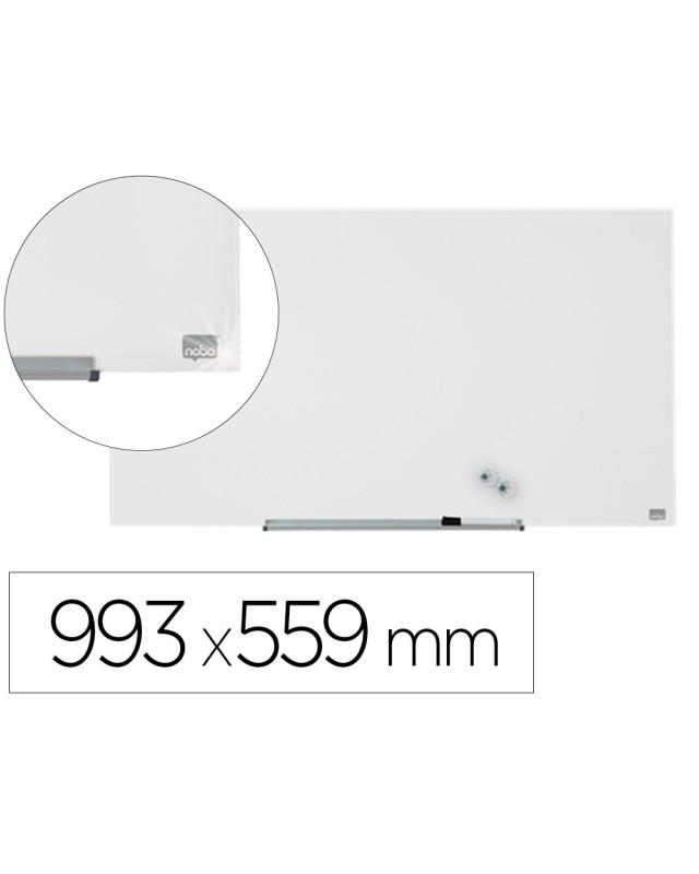 Pizarra blanca magnética de vidrio con una apariencia elegante y bandeja para rotuladores de pizarra blanca extraíble. El sistema InvisaMount facilita la instalación con fijaciones bien ocultas detrás del tablero. La superficie ofrece una ultracapacidad de borrado y la máxima resistencia a las manchas de tinta, marcas de rotulador, arañazos y abolladuras.