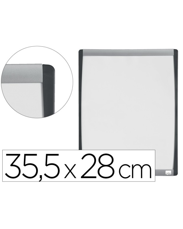 Esta pequeña pizarra es la solución perfecta para anotar ideas, recordatorios o listas. Con su elegante marco arqueado plateado y negro, este tablero de notas se adapta perfectamente a cualquier oficina o entorno doméstico. Se puede montar en la pared con almohadillas adhesivas e imanes para superficies metálicas como frigoríficos, la pizarra magnética se puede montaren orientación vertical u horizontal. Se suministra con un rotulador para pizarra con borrador integrado y 2 imanes para pizarra. Medidas: 280x335 mm.