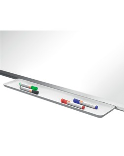 Pizarra de melamina no magnética con un moderno y elegante acabado de aluminio. Se fija mediante a la pared desde las esquinas y se suministra con una bandeja para guardar cómodamente rotuladores y borradores. La superficie de la pizarra de melanina ofrece un buen nivel de borrado para un uso esporádico. Medidas: 1200x900mm.