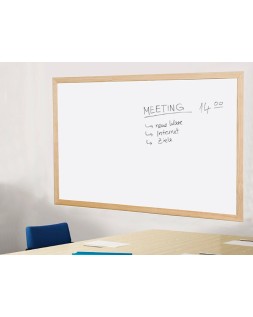 Pizarra laminada, enmarcada en madera de color de pino natural. Muy ligera y resistente. Su acabado permite borrar con mayor facilidad sin que queden marcas. Utilizar solo rotuladores para pizarras blancas. Provista de accesorios de fijación a la pared (todas excepto el código 13285).