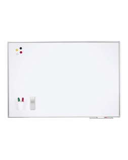 Pizarra lacada con marco de aluminio anodizado y cantoneras embellecedorasde PVC. Superficie apta para la escritura con rotuladores de borrado en s eco e imanes. Incluye una bandeja para rotuladores y sus accesorios para la instalación en la pared. Recomendada para un uso frecuente.