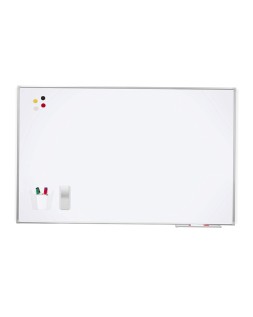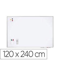 Pizarra lacada con marco de aluminio anodizado y cantoneras embellecedorasde PVC. Superficie apta para la escritura con rotuladores de borrado en s eco e imanes. Incluye una bandeja para rotuladores y sus accesorios para la instalación en la pared. Recomendada para un uso frecuente.