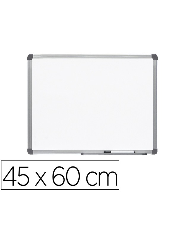 Pizarra blanca rocada lacada magnetica marco aluminio con cantoneras 45x60 cm