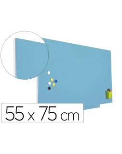 Pizarra modular y multifuncional, que gracias a su diseño moderno sin marco y con fijación magnética, permite colocarlas en vertical y horizontal haciendo posibles infinitas composiciones, desde una unidad hasta cubrir unapared, creciendo según sus necesidades. Además, sus acabados y complement os aumentan su funcionalidad con múltiples usos. Ordena las tareas por colores, personaliza los departamentos de tu empresa, mejora la visualizaciónde la información, etc. Los diferentes acabados totalmente compatibles co n los rotuladores de borrado en seco combinan perfectamente con todo tipo de entornos y además darán un toque moderno y fresco a tu oficina. Medidas: 55x75 cm. Color azul.