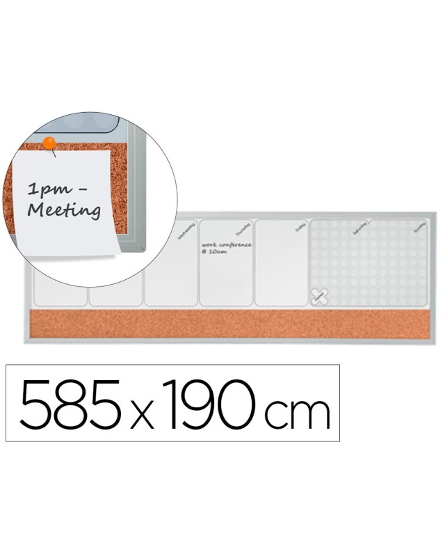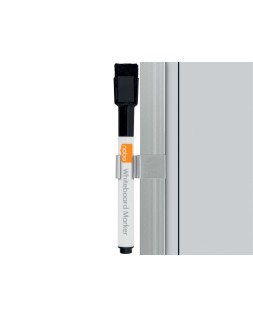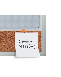 Pequeño planificador de pizarra magnética de borrado en seco y una parte de corcho como tablero de anuncios para fijar notas. Se puede montar en la pared con almohadillas adhesivas o en superficies metálicas con imanes. Incluye un clip portarrotulador integrado, un rotulador para pizarra con un borrador en la tapa, almohadillas adhesivas e imanes de montaje.