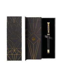 Pluma belius soiree aluminio color art deco negro y dorado tinta azul caja de diseño