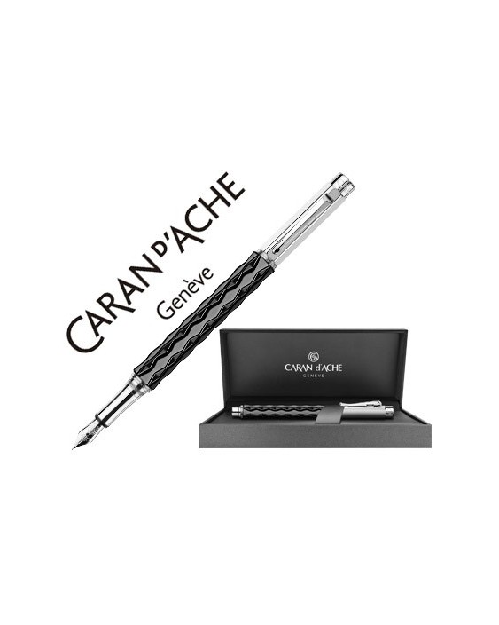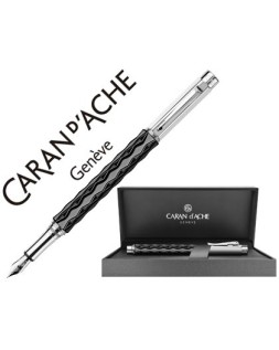 Pluma caran d'ache varius ceramic black placada rodio plumin oro 18k rodiado con estuche plumin medio
