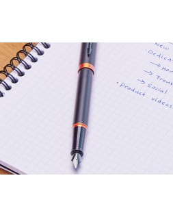 Pluma estilográfica Parker con acabado en laca negra satinada sobre acero inoxidable y llamativos detalles en rojo anaranjado brillante. Diseñada pensando en el profesional moderno, la pluma estilográfica Vibrant Rings de Parker IM es funcional, refinada, y destacará sin duda en cualquier lugar.Al combinar acabados minimalistas y elegantes completamente negros con de talles llamativos y vibrantes, esta pluma estilográfica de lujo sabe cómo causar una excelente primera impresión con un estilo discreto. Con más de un siglo de experiencia y artesanía propia, Parker proporciona a esta colección unas piezas metalizadas exclusivas adornadas con un revestimiento dePVD, que ofrece una resistencia superior al desgaste y la corrosión, así sí como un look distintivo. Plumín fino de ac