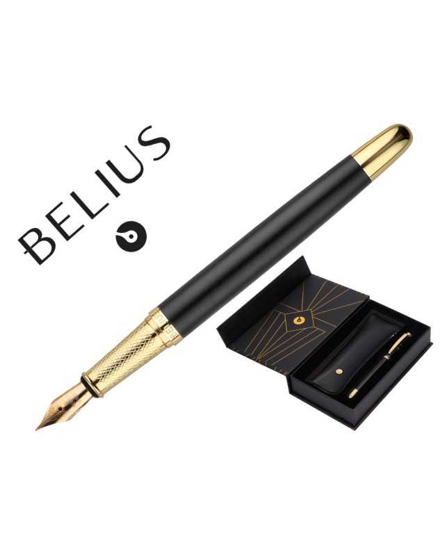 Pluma y estuche belius soiree color art deco negro y dorado tinta azul caja de diseño