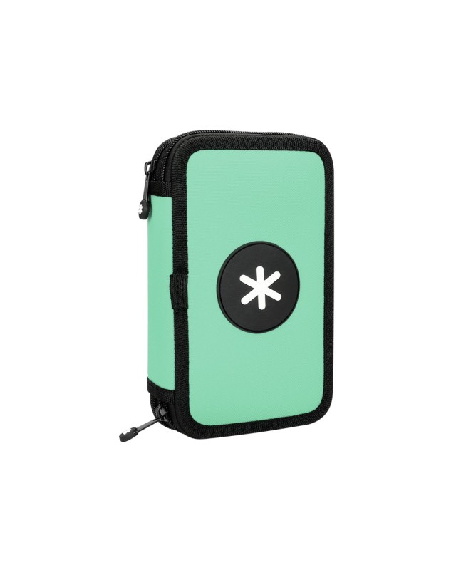 Plumier escolar antartik doble cremallera color menta 28 piezas